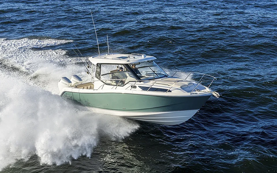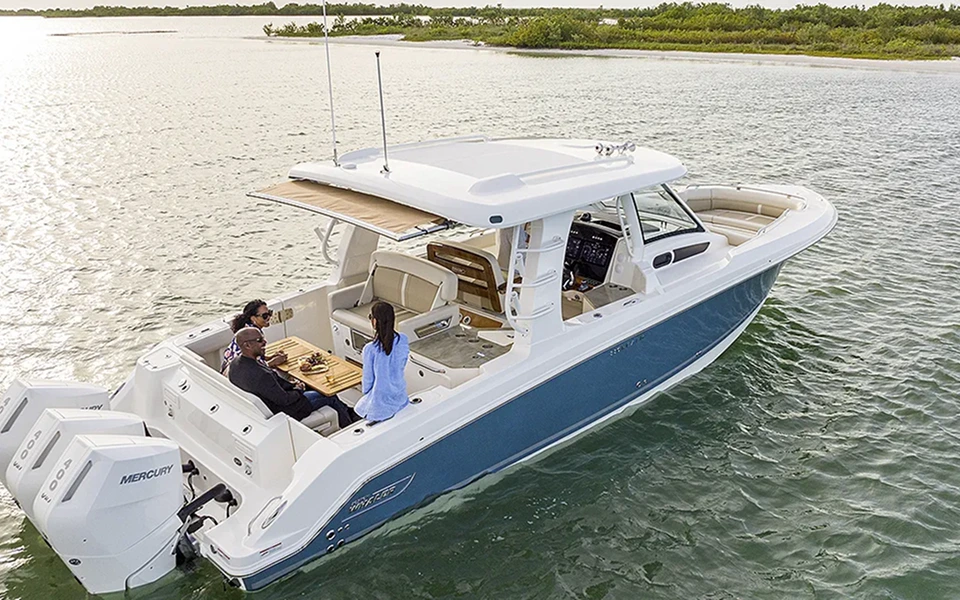 Also known as a “walkaround,” this style of boat includes a fully equipped cabin, making it perfect for all-day outings or overnight adventures with family. An outside walkway provides access to the bow. Pilothouse (fully enclosed weather protection) options are available.