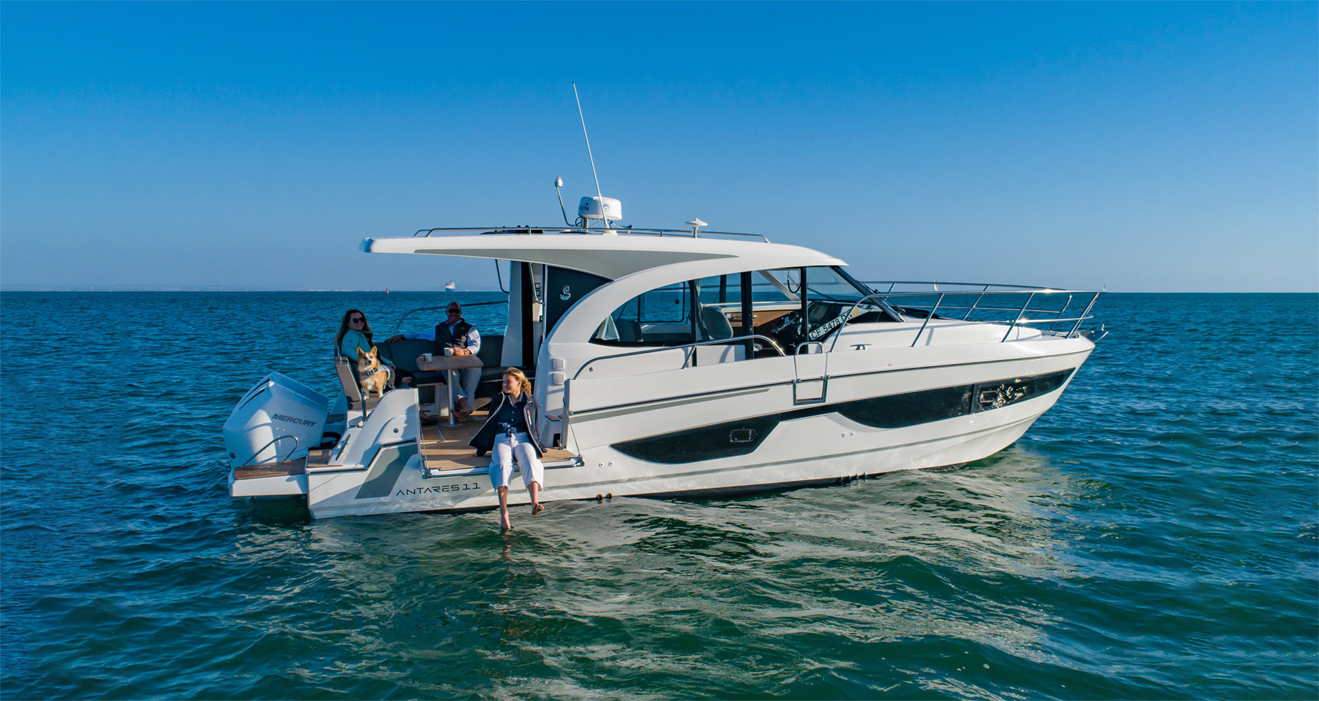 Natural light and cruising comfort characterize this large weekender. The double master cabin with en-suite shower room is well above the usual standards. The full beam aft cabin has room for three. In the salon, the Antares 11 can easily entertain up to 7, while you enjoy the stunning views through ample windows.