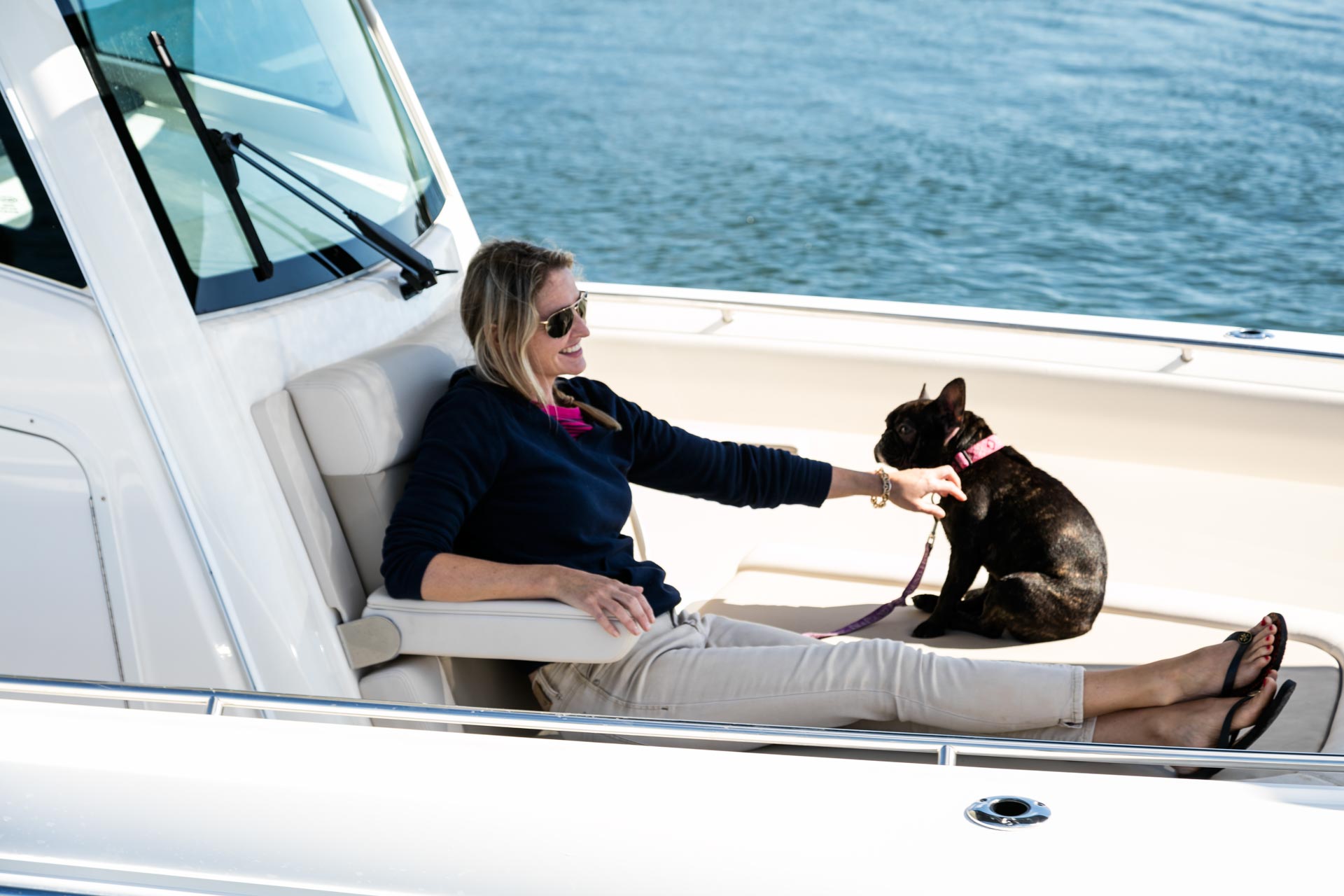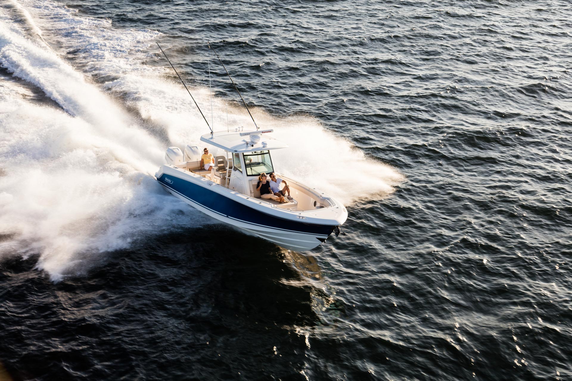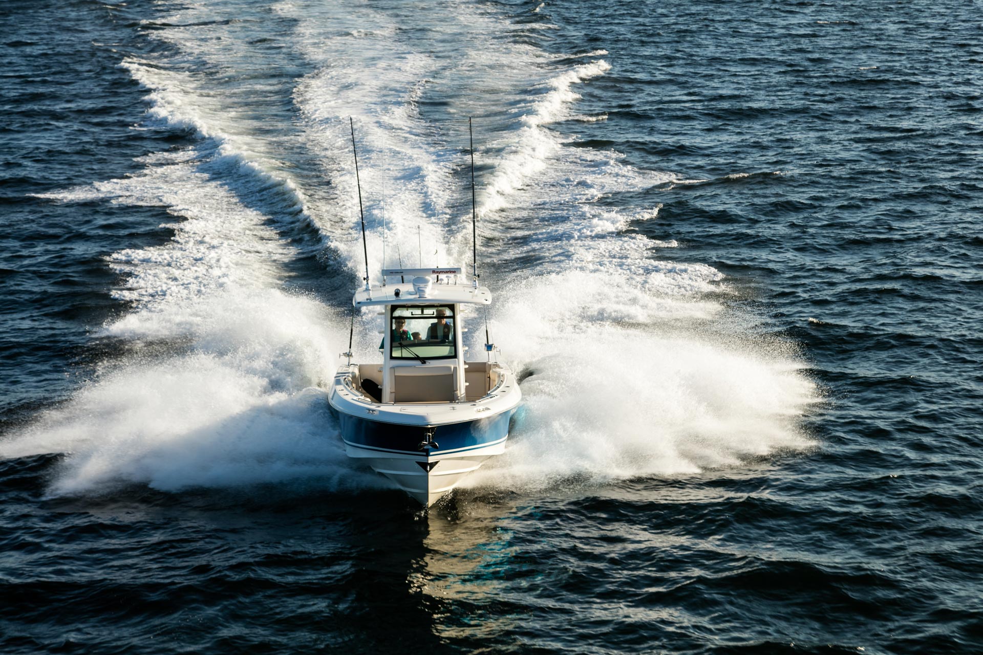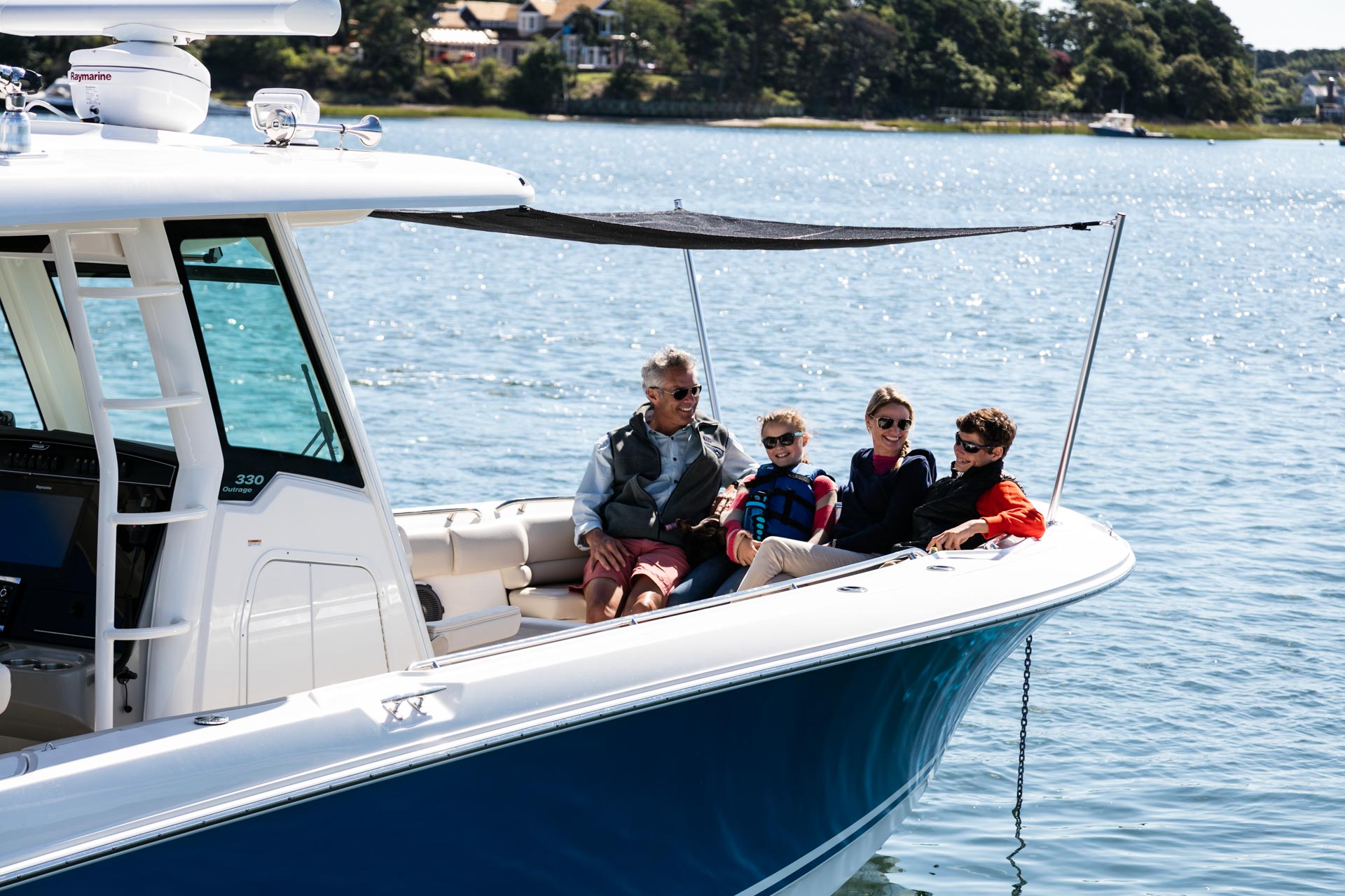 - Smart bow seating, a convenient dive door and optional bow and aft sunshades empower great entertaining.