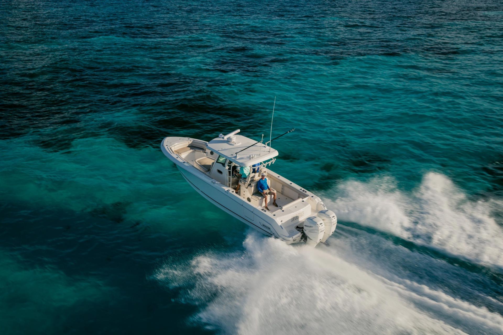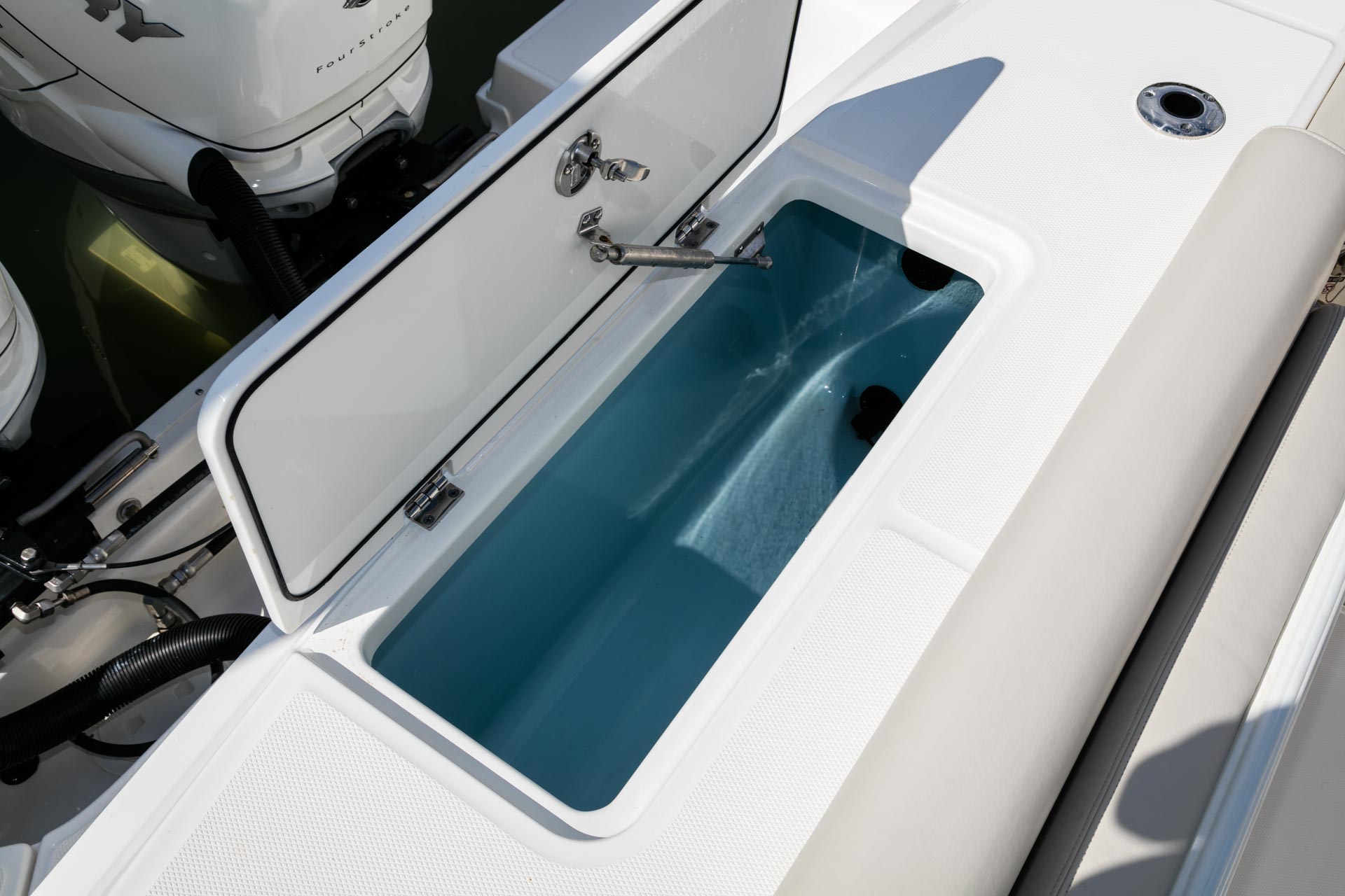 - Enjoy ample fish-fighting room in the cockpit, courtesy of a wide beam and fold-away aft bench.