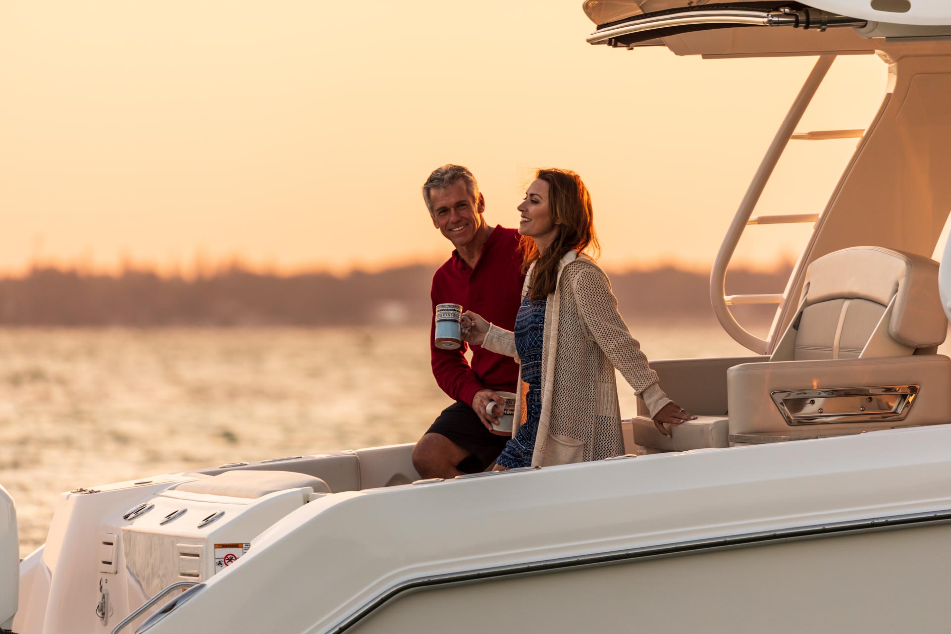 Meet the boat that calls to mind cherished memories and empowers exciting new ones: the brilliant 350 Realm. The 350 Realm express model combines impressive capability with purposeful features and unsurpassed comfort. For entertaining friends and family, discovering far-flung islands, chasing deep-sea fish, or spending long days at anchor, the 350 is perfectly suited for any adventure. Cutting-edge design ensures mastery of the water, so you can let imagination be your guide.