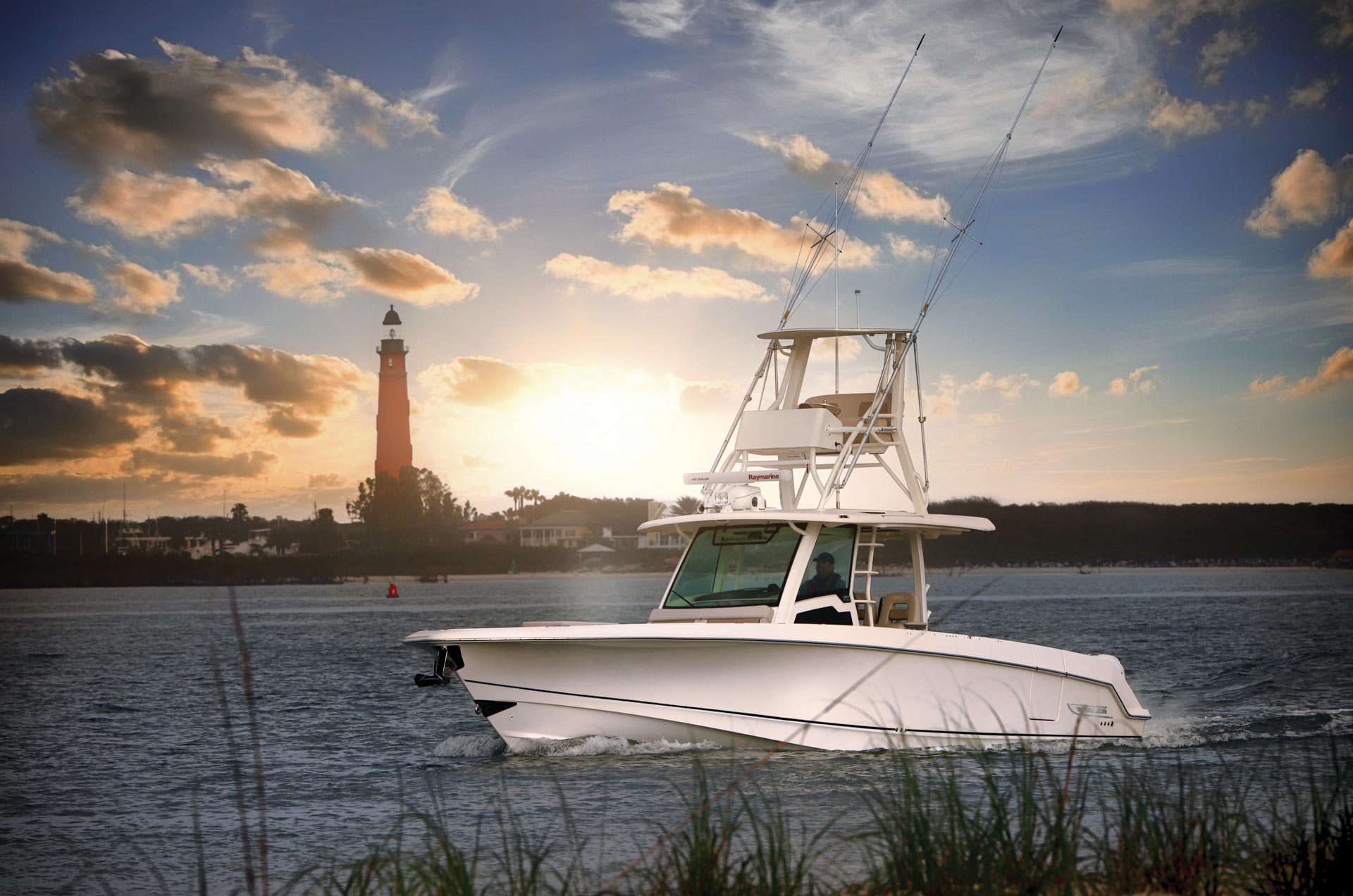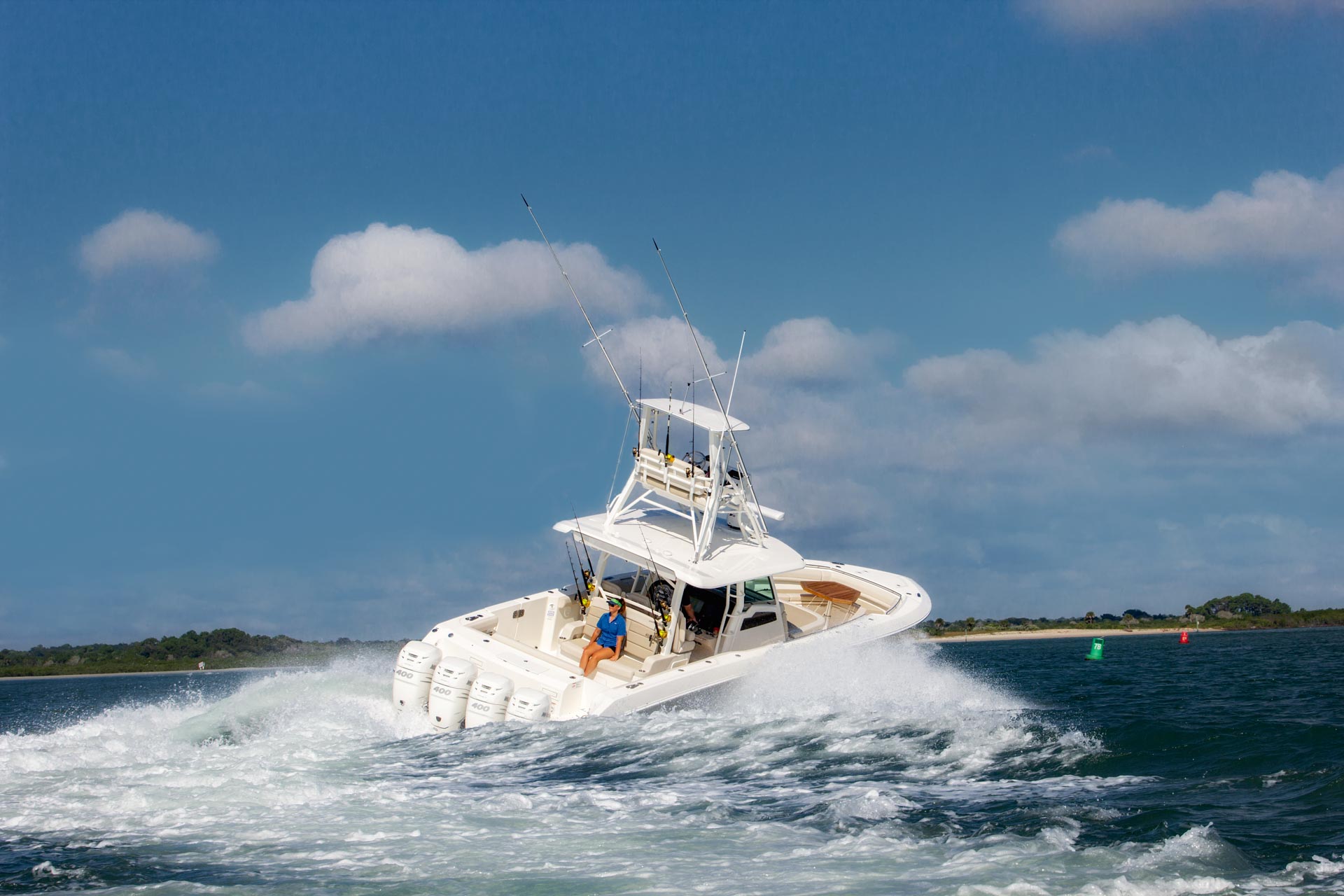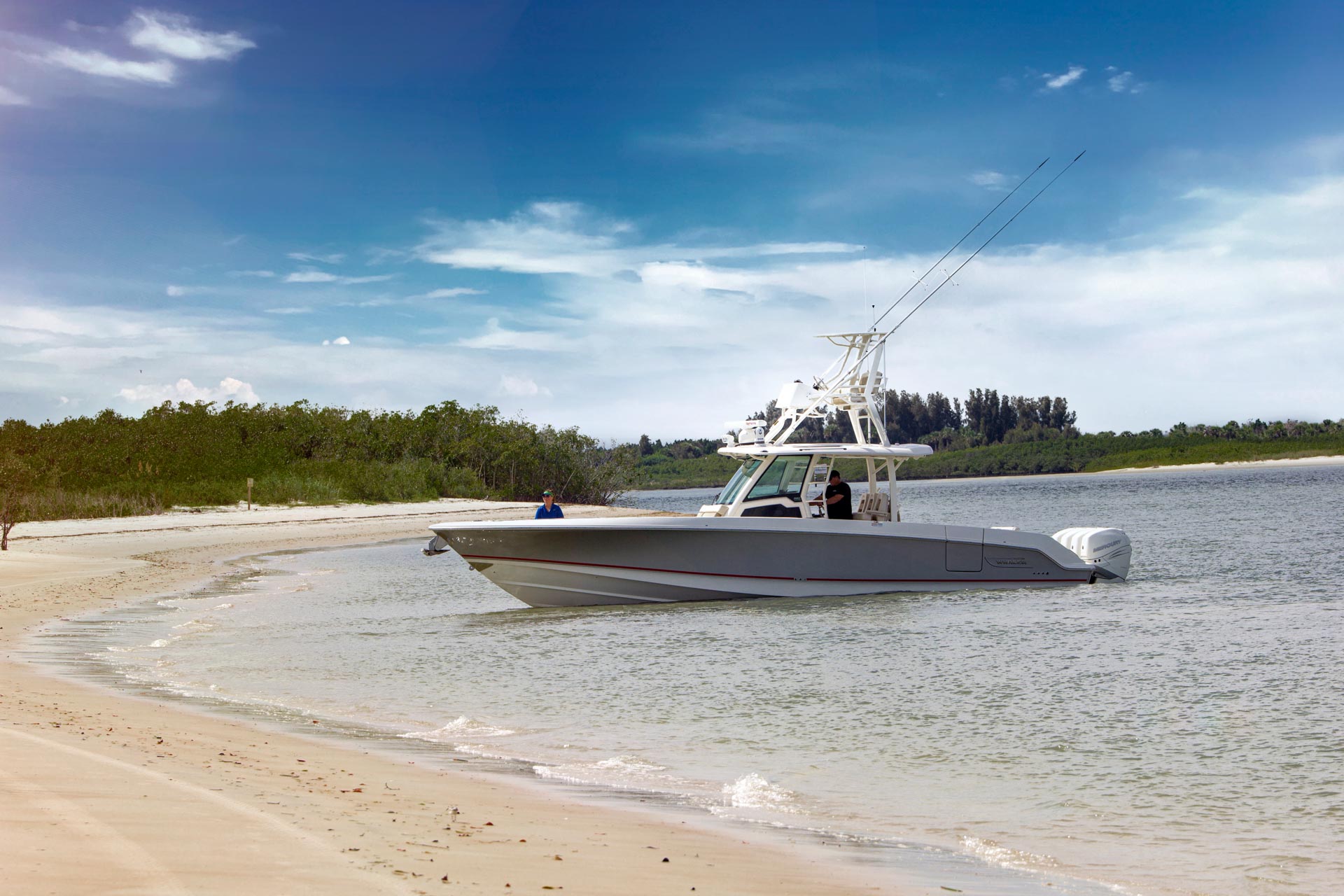 The 380 Outrage® delivers a full-spectrum, pinnacle experience, performing beautifully as an offshore fishing platform, an entertaining vessel, a yacht tender or all of the above. The roomy, notched bow features expansive seating and storage, while the cockpit includes a new aft-facing couch with optional removable table and an optional Summer Kitchen, perfect for entertaining friends and family. Boston Whaler's precision-engineered hull and Mercury® engines work together to provide remarkable efficiency, reliability and smooth, predictable handling. Experience true Confidence to the Core with the 380 Outrage.