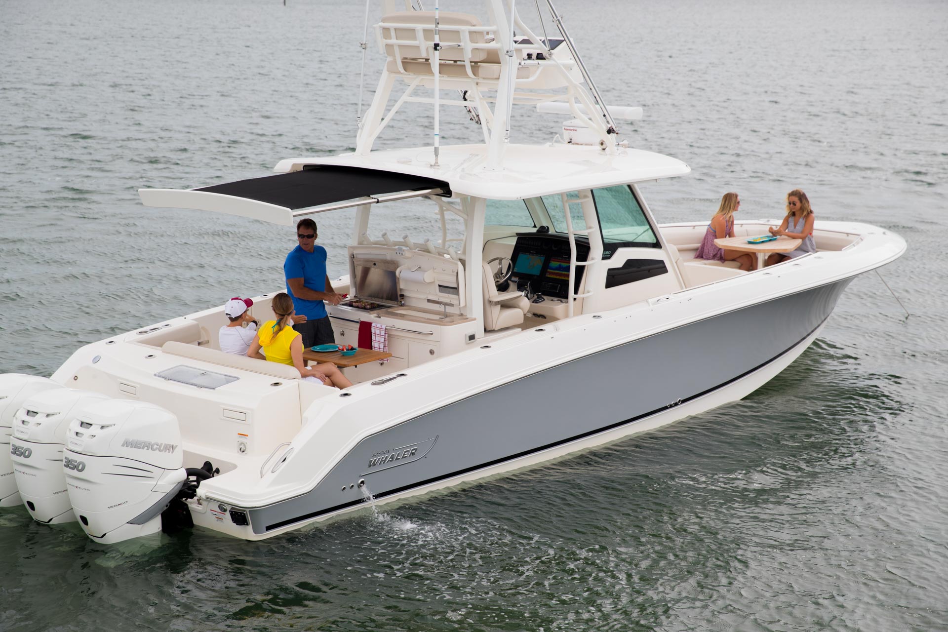 - Optional Whaler Watch technology provides remote connectivity by monitoring systems and vessel position via satellite, ensuring 24/7 security even while away.
